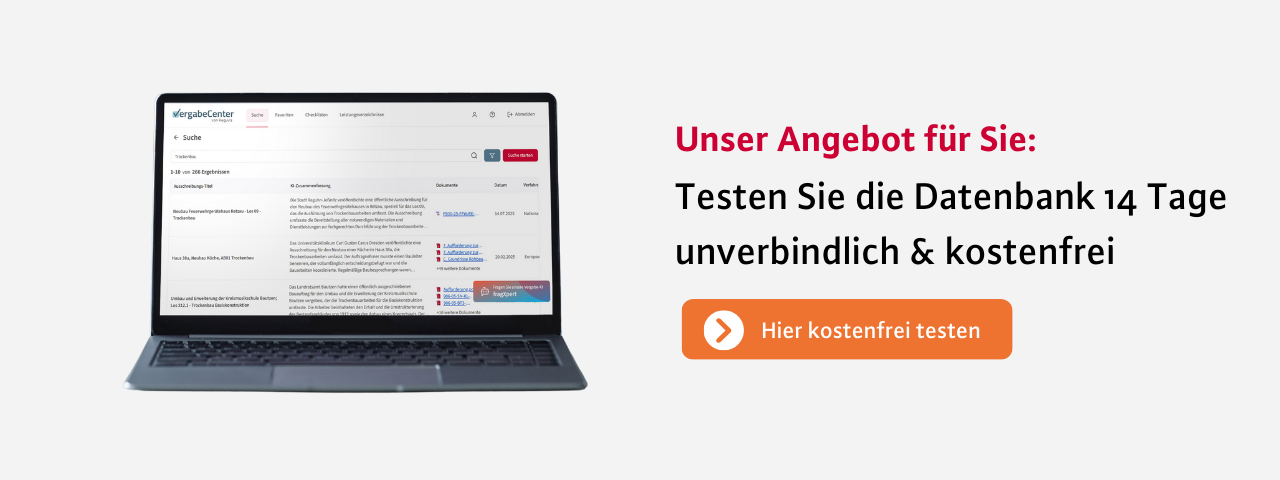 Von Vorlagen profitieren: Wie gestalten andere Stellen vergleichbare Vergaben? Welche Formulierungen sind bewährt? Im Reguvis VergabeCenter finden Sie genau diese Antworten mit Zugriff auf 25.000 reale Vergabefälle.